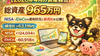 30代年収500万・夫婦2人のリアル資産報告(2026年4月)。新NISA・iDeCoの運用結果を公開。イラン情勢悪化・原油高・円安が相場を揺らした月でも積立継続。総資産9,652,092円、スタートから+469万円超の記録を詳しく解説します。