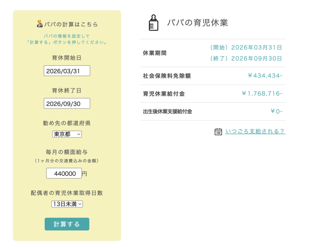 ボーナス一回分の35万円の負担で、6ヶ月の育休が取れる